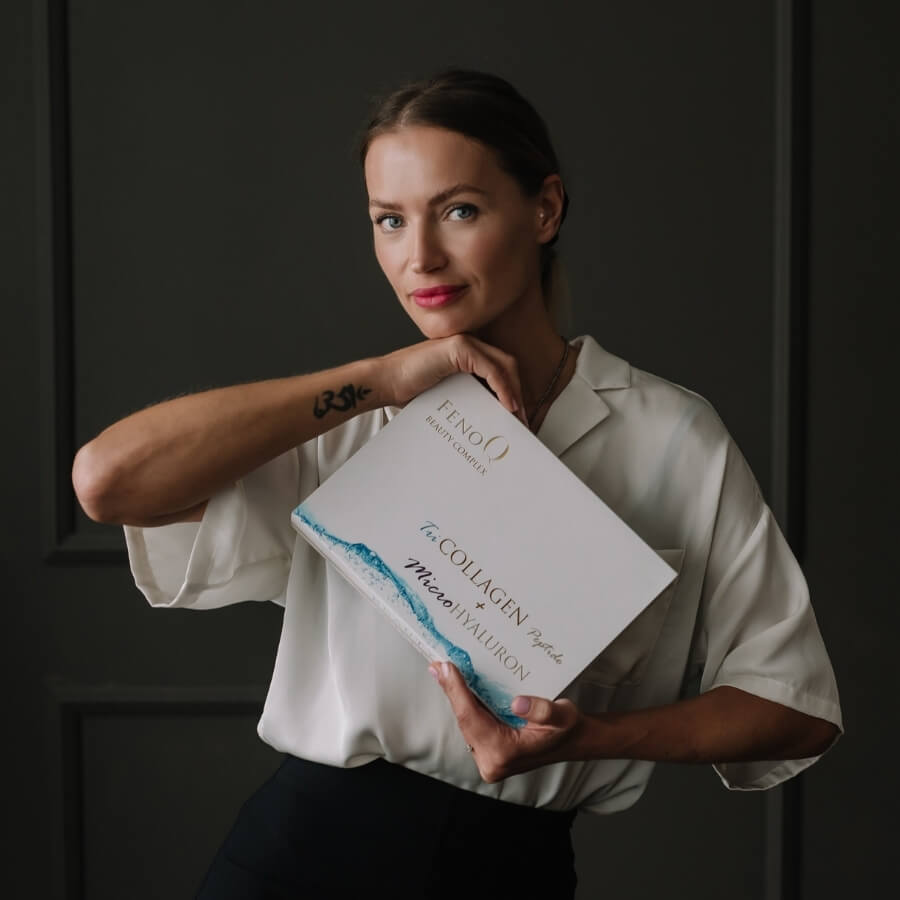 FenoQ MicroHyaluron er en ny generasjons oral kombinasjon av hyaluron, kollagen og 25 andre vitaminer, mineraler og antioksidanter for å fremme hudfuktighet, hårvekst og ungdommelig skjønnhet.